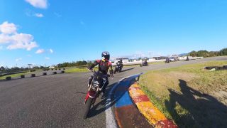 午前中に自分の動きに合わせたグローブを試着して動きが変わり、その後も同じ動きを意識したことで目線の遅れが少なくなりライディングフォームが変化しました。バンクも安定してアクセルを開ける時間が長くなりました。
